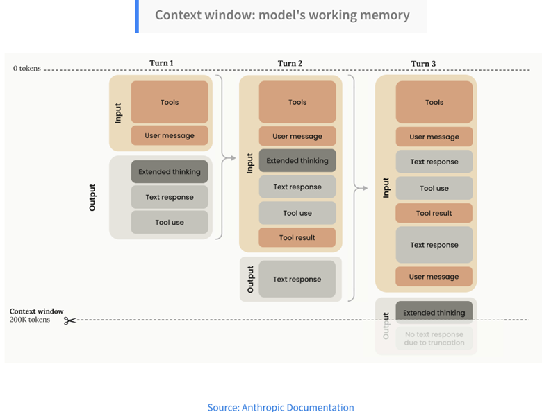 - Finite Context Window: Models have a fixed size working memory, or context window. This window holds the system message, the user’s current question, any attached files, and the entire conversation history. Because the total token count compounds with every turn, the window can fill up quickly. Once this limit is reached, models must begin dropping earlier parts of the conversation, leading to users repeating information. This introduces unacceptable risk in chained tasks like loss development or cohort analysis, where historical traceability is paramount.