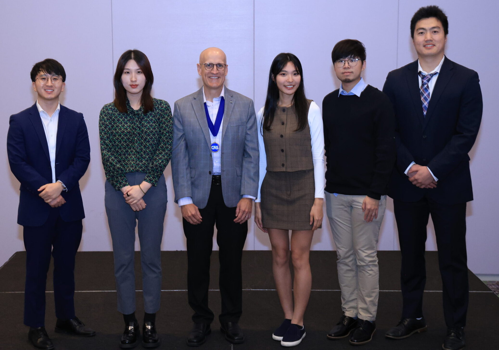 Jonathan Ouh, Jiayue Fan, CAS President David Cummings, Judy Oh, Alan Ng, Jimmy Wang.