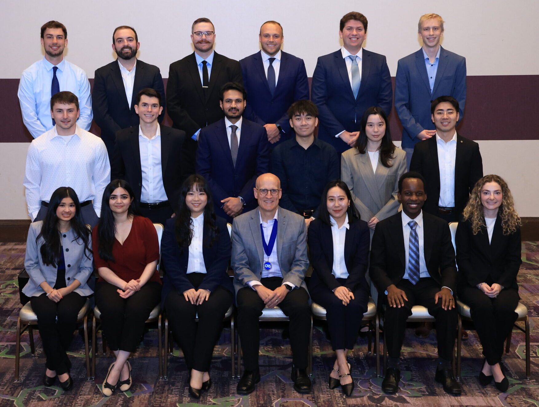 Row 1, left to right: Azwirah Ahmed, CAS President David Cummings, Xiao Li